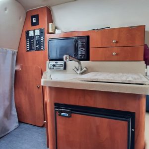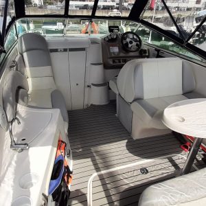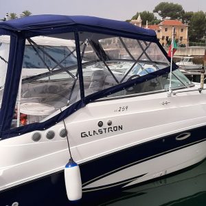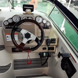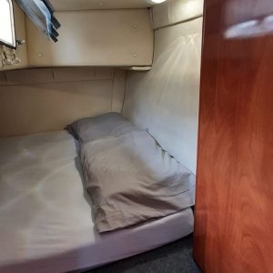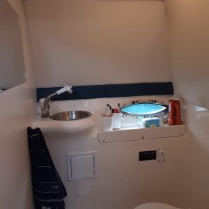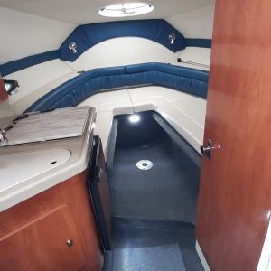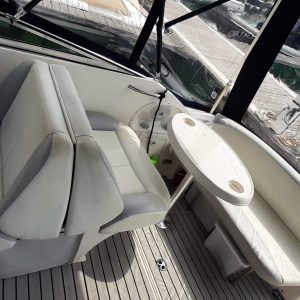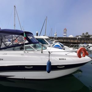 Coberturas, Guincho eléctrico, Wc marítimo eléctrico, Sonda, Gps, Radio VHF, Mesa cockpit, Água quente, Microondas , Fogão, Televisão e Frigorifico