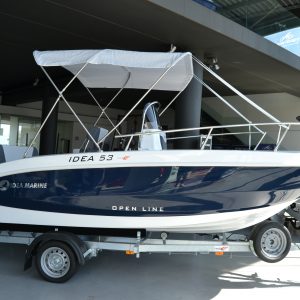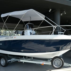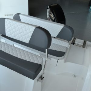 Côr casco, Bussola, Sistema som Fusion, Tomada 12V, Deposito combustível 80L, Mesa Pic-Nic, Cobertura consola e bancos, Bimini, Buzina eléctrica, Registo Classe 5 e Palamenta Classe 5
