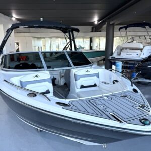 Torre Wakeboard, Cobertura proa, Cobertura cockpit, Bimini, Sistema som, Profundimetro, Perfect Pass, Deckmarine cockpit e plataforma de banho